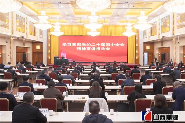 根據省(sheng)(sheng)委(wei)(wei)(wei)(wei)(wei)、省(sheng)(sheng)國資委(wei)(wei)(wei)(wei)(wei)黨(dang)(dang)委(wei)(wei)(wei)(wei)(wei)統一安排(pai),11月(yue)27日,山西(xi)(xi)焦(jiao)煤(mei)黨(dang)(dang)委(wei)(wei)(wei)(wei)(wei)舉行(xing)學習貫徹黨(dang)(dang)的二(er)十屆四中全會(hui)(hui)(hui)精神宣講(jiang)報告(gao)會(hui)(hui)(hui)。省(sheng)(sheng)國資委(wei)(wei)(wei)(wei)(wei)黨(dang)(dang)委(wei)(wei)(wei)(wei)(wei)宣講(jiang)團(tuan)成員(yuan)(yuan)、山西(xi)(xi)焦(jiao)煤(mei)集團(tuan)公(gong)司(si)(si)黨(dang)(dang)委(wei)(wei)(wei)(wei)(wei)書記、董事長王強作(zuo)宣講(jiang)報告(gao)。山西(xi)(xi)焦(jiao)煤(mei)集團(tuan)公(gong)司(si)(si)黨(dang)(dang)委(wei)(wei)(wei)(wei)(wei)常委(wei)(wei)(wei)(wei)(wei)、省(sheng)(sheng)紀(ji)委(wei)(wei)(wei)(wei)(wei)監委(wei)(wei)(wei)(wei)(wei)駐集團(tuan)公(gong)司(si)(si)紀(ji)檢監察組組長郝點亮(liang)主持報告(gao)會(hui)(hui)(hui)。山西(xi)(xi)焦(jiao)煤(mei)集團(tuan)公(gong)司(si)(si)領導(dao),總部(bu)(bu)機關各(ge)(ge)(ge)部(bu)(bu)門、共享服務(wu)中心(xin)中層副職級以(yi)上人員(yuan)(yuan)在主會(hui)(hui)(hui)場(chang)參(can)(can)加,各(ge)(ge)(ge)子分公(gong)司(si)(si)班子成員(yuan)(yuan)、部(bu)(bu)門中心(xin)負(fu)責人等在各(ge)(ge)(ge)視頻分會(hui)(hui)(hui)場(chang)參(can)(can)加。